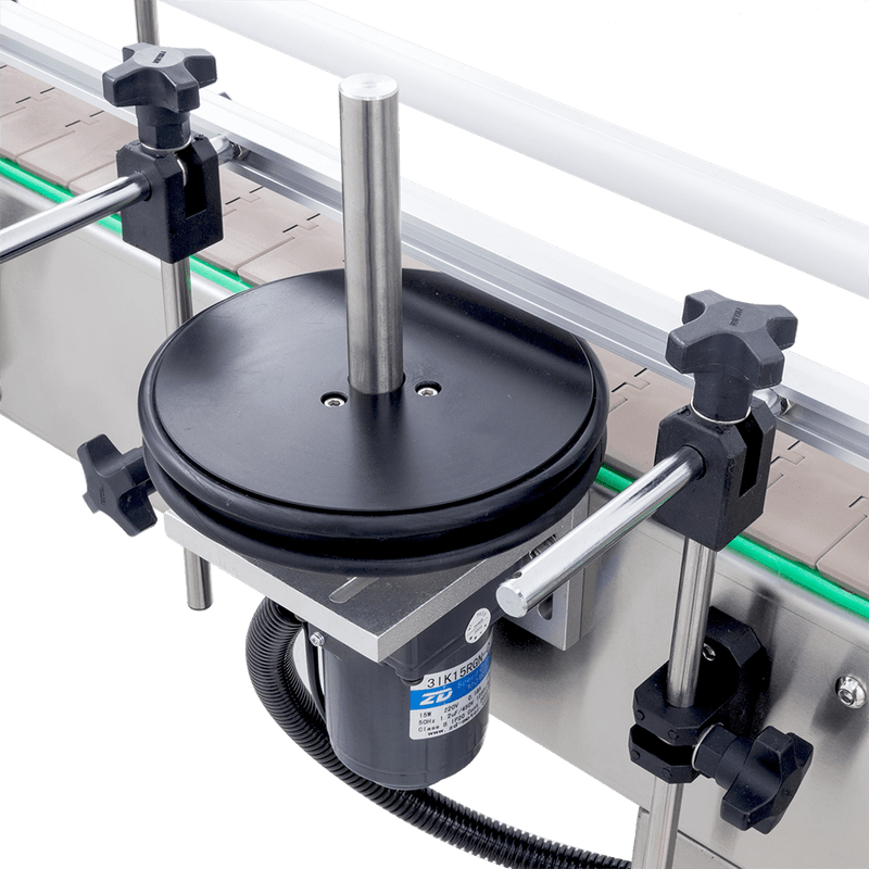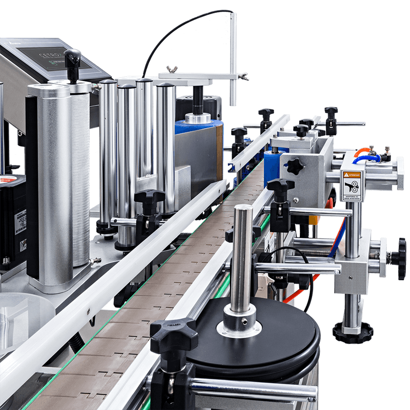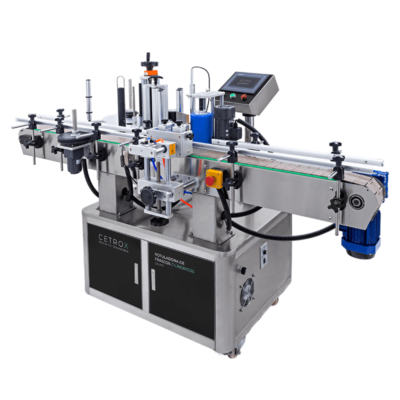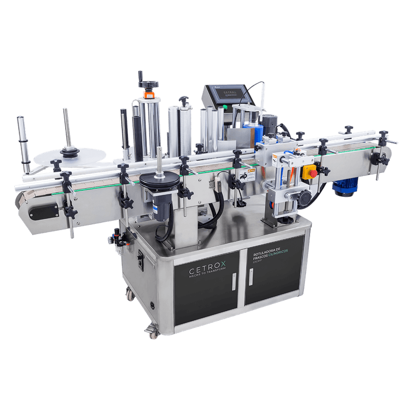 Possui capacidade de rotular vários tipos de superfícies de frascos cilíndricos de forma rápida e eficiente devido ao seu sistema de divisão dos frascos que permite que a máquina seja abastecida por uma grande quantidade de embalagens sem que o processos contínuo seja prejudicado. Este sistema impulsiona as embalagens ininterruptamente e dá o espaço necessário para rotular entre uma e outra, levando, assim, o frasco ao seu sistema de parada, permitindo que você possa regular a velocidade da esteira da melhor forma em sua produção.