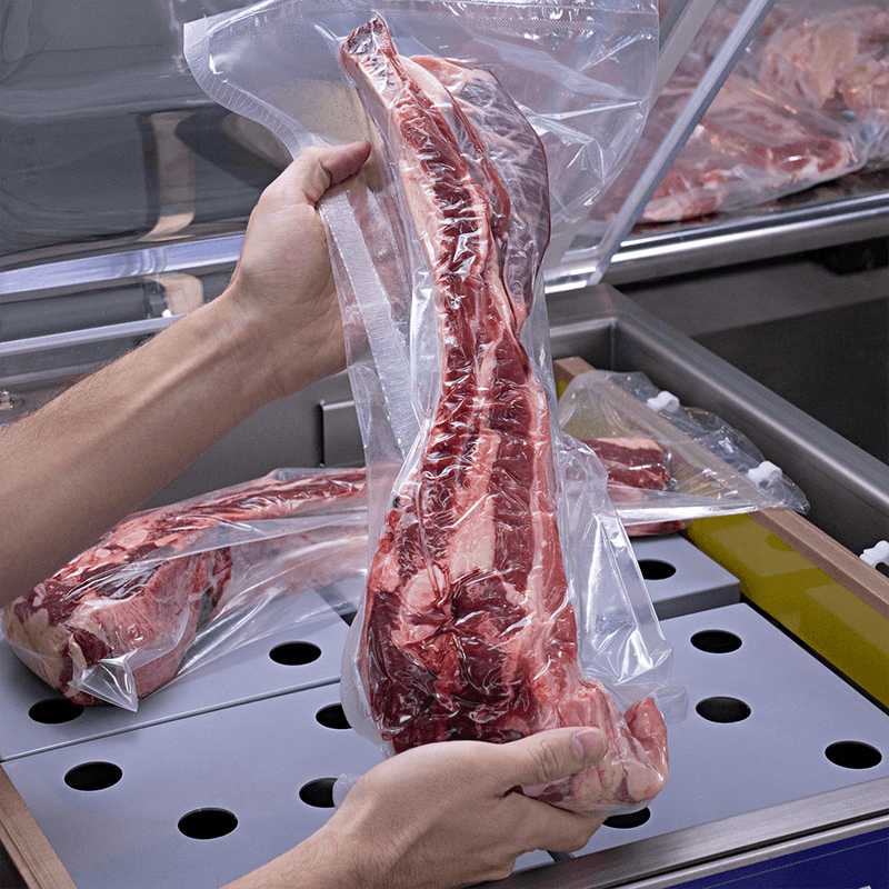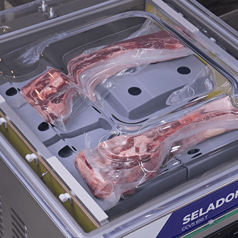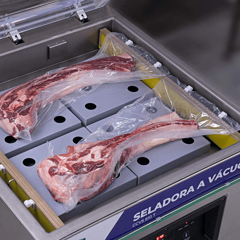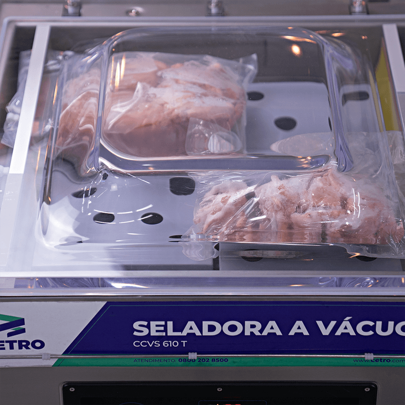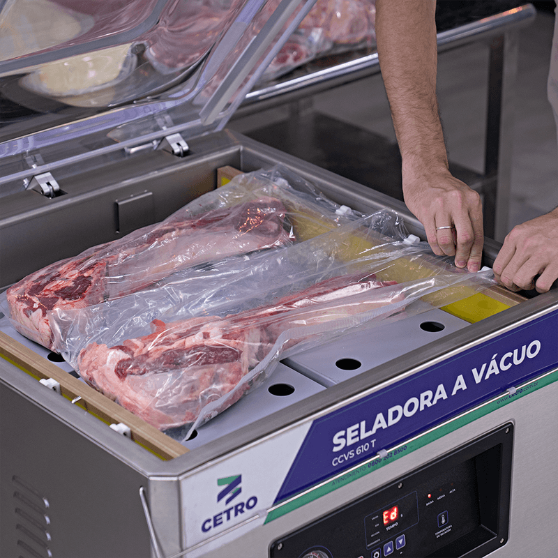 diversos segmentos da indústria e do comércio, embalando a vácuo inúmeros produtos, como: carnes, salgados, grãos, legumes, cereais, espetinhos, frios, massas, queijos, hortifrúti e muito mais.