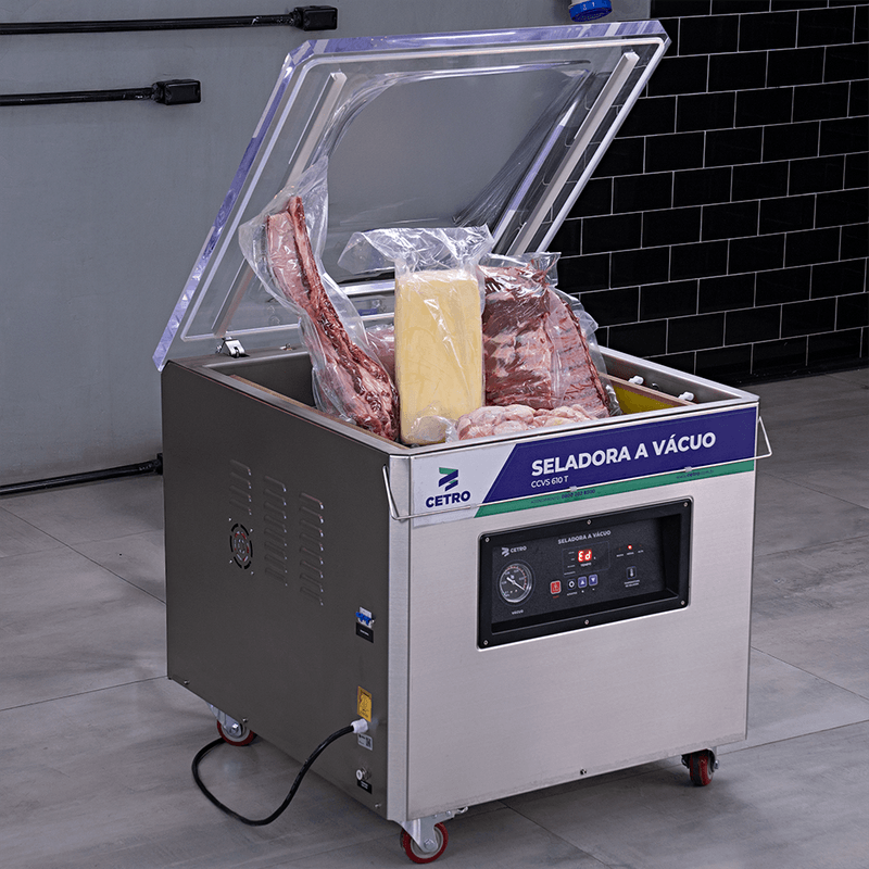 Seladora a Vácuo de Bancada com ATM CCVS 610 T A Seladora a Vácuo de Bancada com ATM CCVS 610 T é um maquinário industrial compacto ideal para
