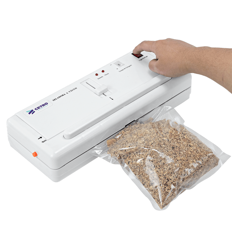 vedação eficaz e segura.DIVERSIDADE DE APLICAÇÃOA Seladora Vácuo é uma solução surpreendente que trará praticidade a sua casa ao embalar produtos, como laticínios, embutidos, carnes, peixes, espetinhos, pizzas, legumes, verduras, massas, lanches, grãos e pequenos objetos.